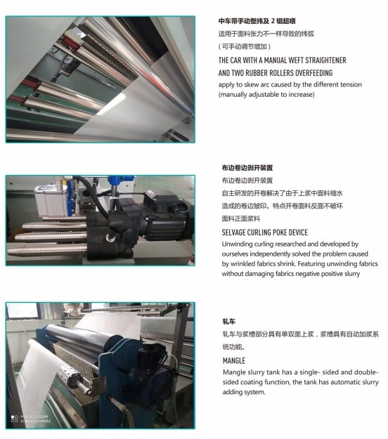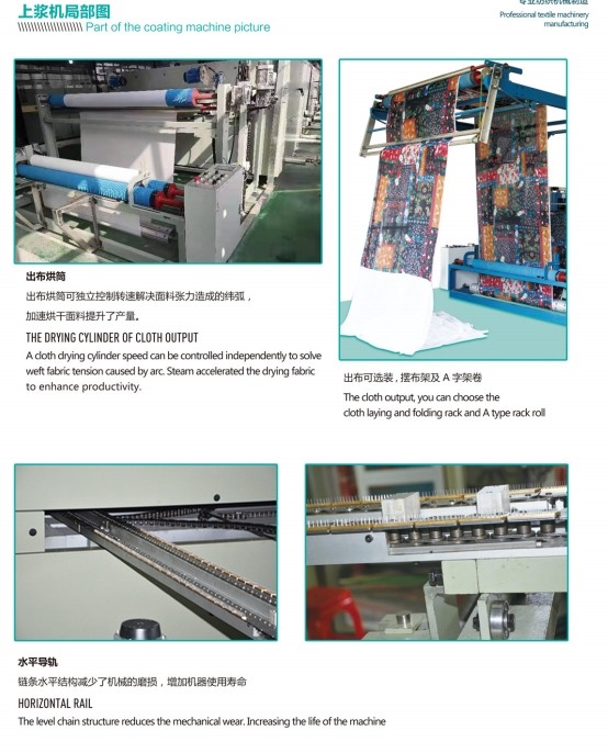 独立传动,无张力牵引,适合各种布匹的上浆。